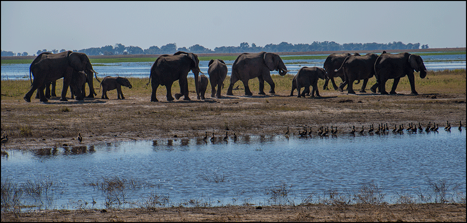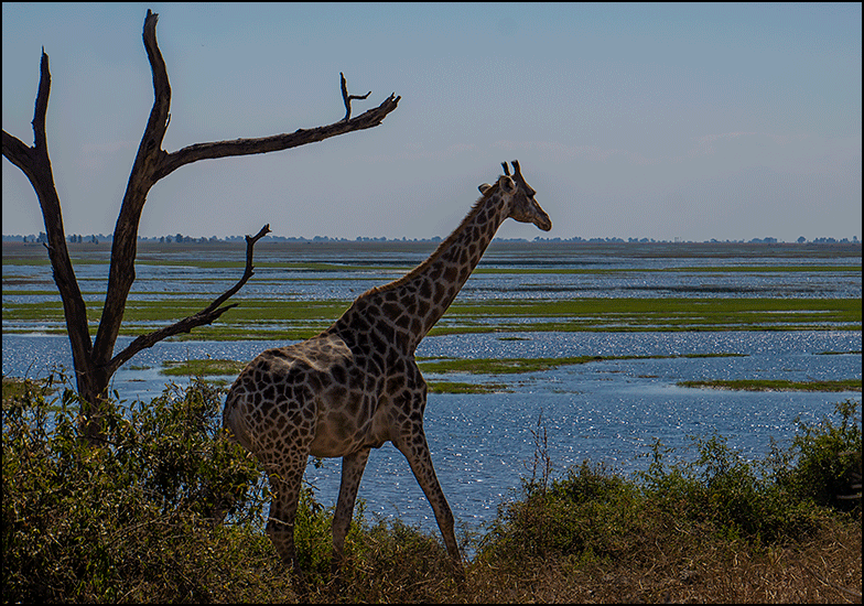 Gee took over driving again (to everyone’s relief) and we followed a long, linear stretch of road. There was a forested ridge on our left, and the Chobe River lay below us on the right, wide and shallow, with the far bank belonging to Namibia. We were in the bush proper now, the wild places unfolding ahead, and we were filled with anticipation of what we would see.