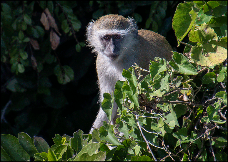 We paused to watch a troop of young vervet monkeys tumbling through the branches. They chased each other with quick, mischievous energy, scrambling up and down the trees in a blur of movement. One stopped to peer down at us with bright, curious eyes before leaping back into the fray, while an adult looked on from a higher perch. It was impossible not to smile at their easy, unselfconscious joy.