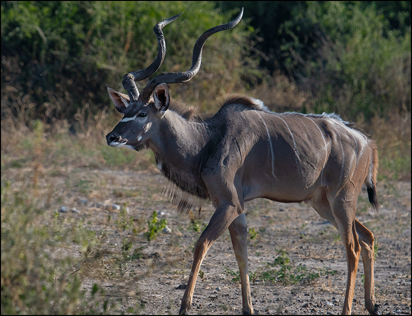 Kudus are one of the largest antelopes, and to me they’re absolutely among the most beautiful. The males carry huge, magnificent spiraling horns that give them an air of quiet command