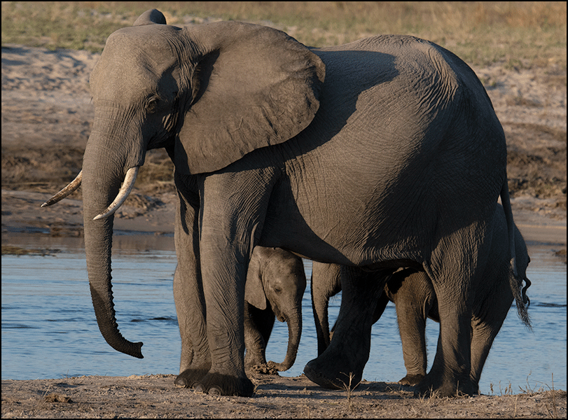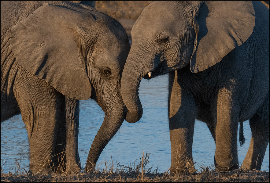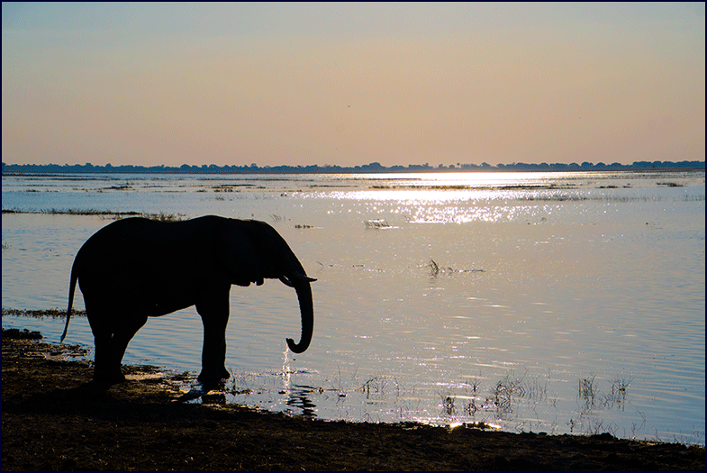 late-afternoon drink. The lowering sun was turning the sky to pastel, and several elephants stood as dark silhouettes against the shimmering water, silver droplets falling from their raised trunks as they drank. It was magical.