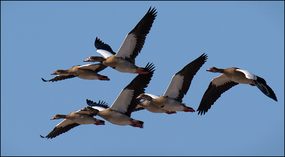 To my delight, a flock of Egyptian geese came flying toward us, their