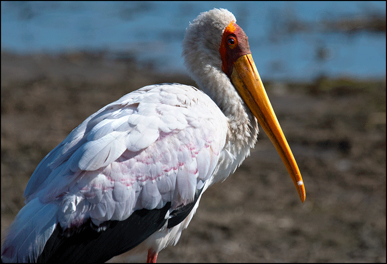 A yellow-billed stork wandered along the shore, letting us get surprisingly close. His