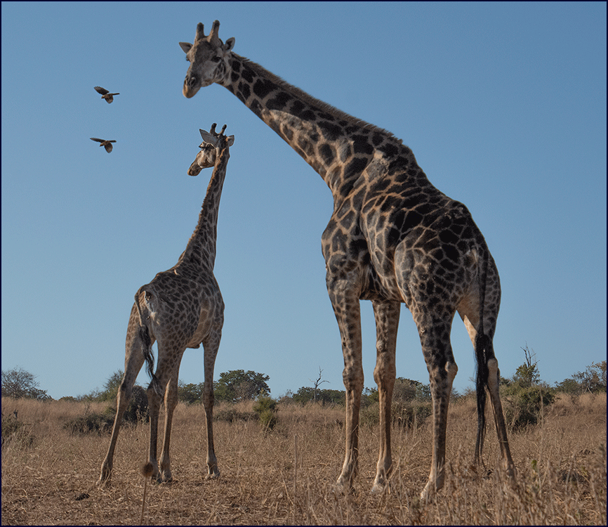 Then came more giraffes - a whole tower of them - the collective noun seemed very appropriate. Two stood on higher ground and literally towered above us, perfectly silhouetted against the brightening sky. There were three babies in the group, one of them quite small, staying close to his mother’s side as they moved with that elegant grace only giraffes have.