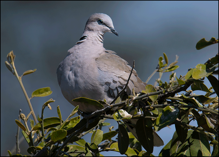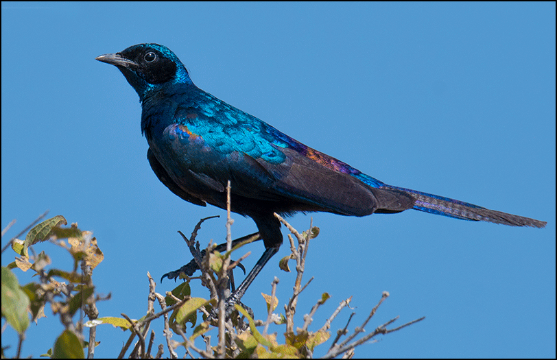 Birdlife was excellent. A Cape turtle dove perched close to the road, perfect for photos. A crimson-breasted shrike flashed across the path, its fiery red chest glowing against jet‑black wings. It paused just long enough to give us a quick, appraising look before vanishing into the thicket. A Burchell’s starling posed on a high twig, its dark blue plumage shimmering with hints of green and purple in the sunlight.