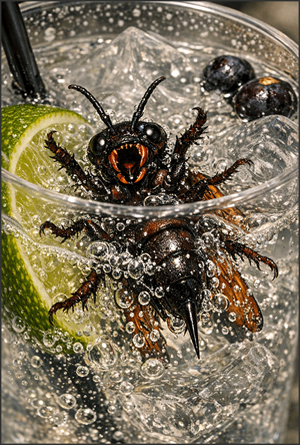 During dinner, a large bug flew into Amanda’s gin and tonic and promptly drowned. It was a driver ant, Gee said, and a sizable one at that. Amanda was not stoic about this.