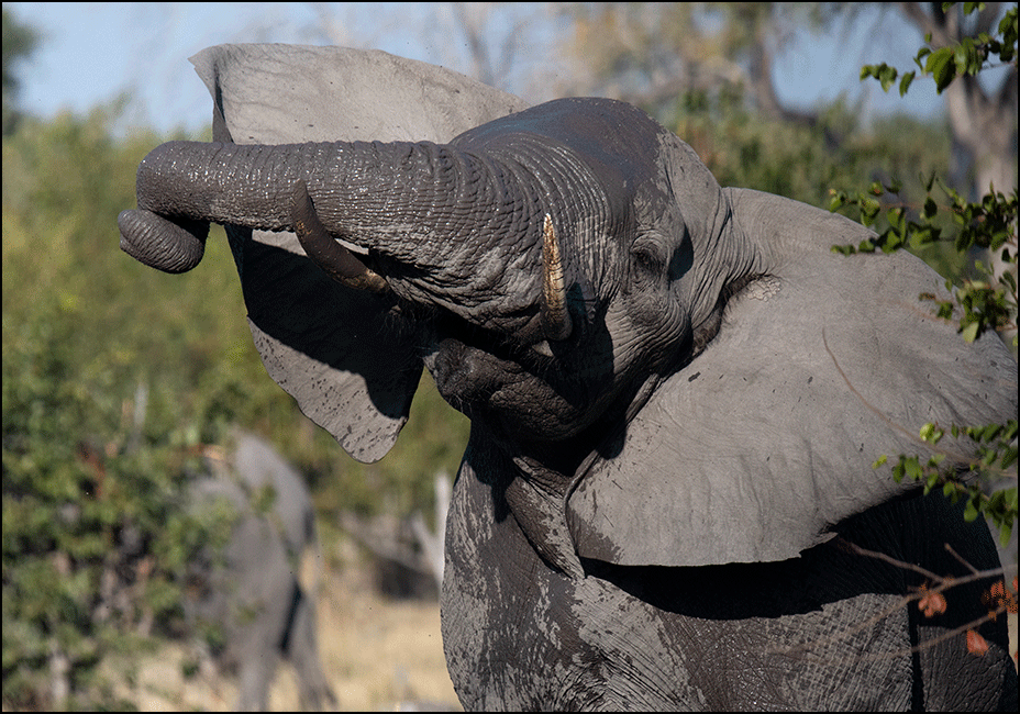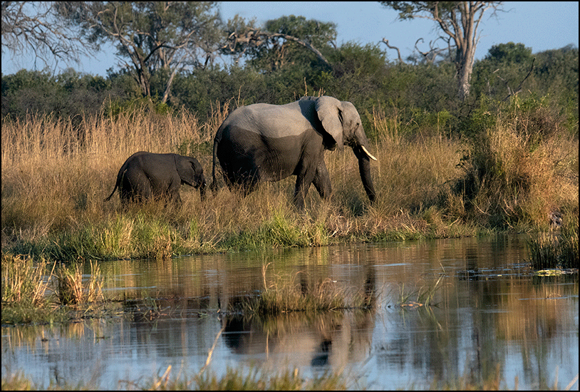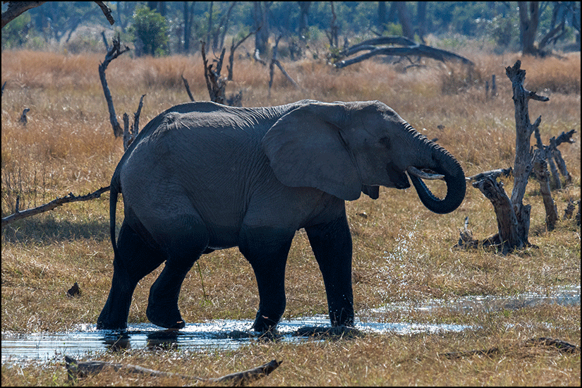 her side showed where she had recently waded a deeper channel. The elephants here were definitely wetter than the ones in Savuti, and looked as though they lived half their lives in water.