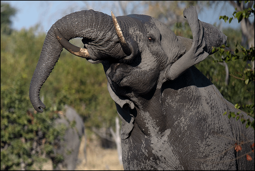 A herd of elephants came to the river to drink. One big bull took a mud bath right in front of us. We watched in awe as he contorted his trunk, shook his massive head, and flapped his ears wildly while dousing himself in wet mud - all the while keeping one suspicious eye fixed on us. The smell of wet earth drifted over us as he flung mud up in great arcs. He looked utterly blissful, but also as if he’d happily chase us off if we interrupted his spa treatment.