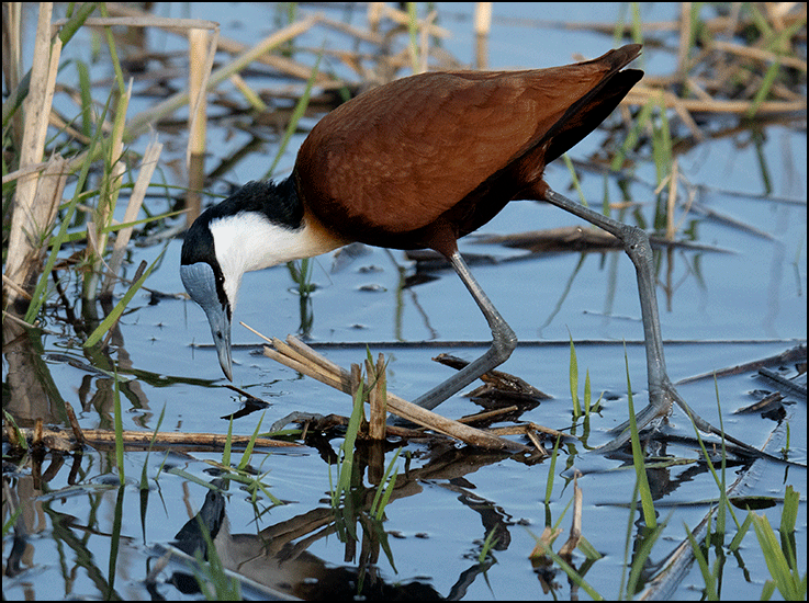Waterfowl were everywhere. We saw an Egyptian goose with tiny, newly hatched babies. A jacana waded through the shallows, then stepped lightly across the tops of lily pads. These
