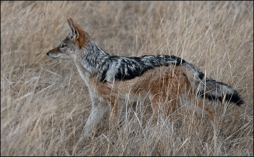 black-backed jackals hovered nearby, hoping for scraps. As one trotted through the dry grass, I marveled again at how beautiful these little scavengers are, all sharp faces and quick, fox‑like steps.