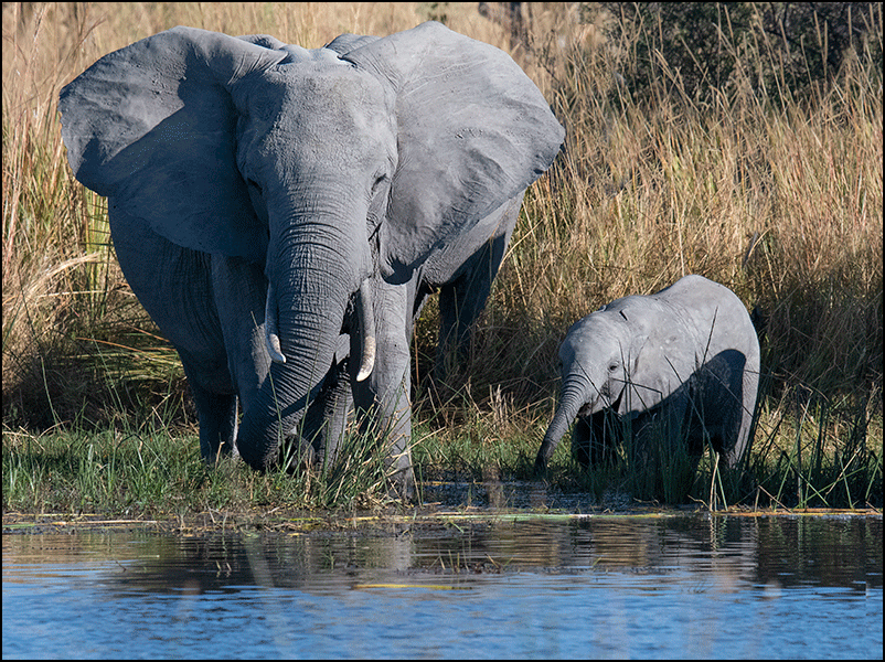 No sooner had they disappeared than another breeding herd appeared on the opposite bank. They came down quietly to drink - six adults and two small babies - standing side by side at the water’s edge. We watched them for a long time, hoping they might cross toward us, but when they’d had their fill they turned and melted silently back into the trees. The forest swallowed them without a sound.