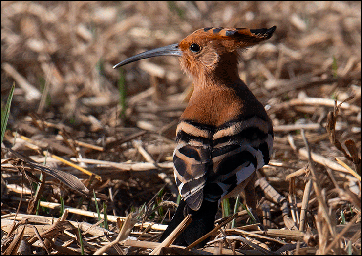 An African hoopoe probed the ground nearby, its reddish plumage and